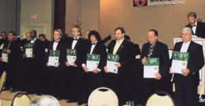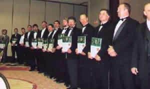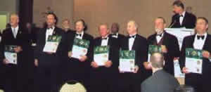 Millennium leadership awardees line up ( left to right) Ernesto Presas, Peter Browne, Daniel Verkerke, Glenn Wilson, Jim Arvantis, Greg Lee, Russ Coelho and John Chambers.
