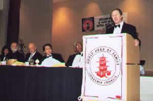 Grandmaster Emil Farkas takes to the podium and delivers an eloquent speech.