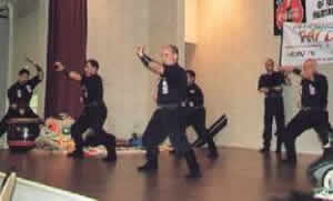 Grandmaster Glenn Wilson's Pai Lum Tao troop entertains crowd.