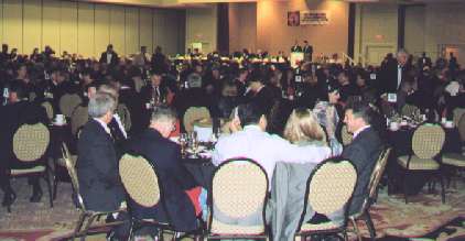 An overflowing crowd watches the festivities at the Radisson Hotel Universal in Orlando, Florida.