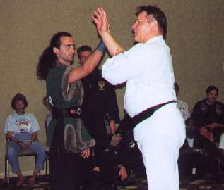 Grandmaster Ernesto Presas of the Philippines (right) engages his opponent during seminar
