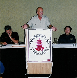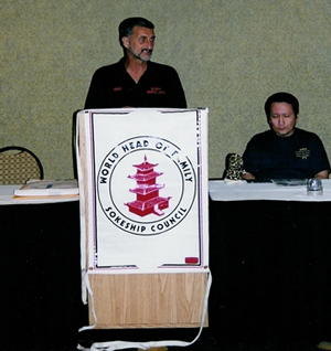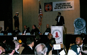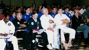 Grandmasters & masters who gave free seminars are acknowledged on stage (the world's top martial artists)