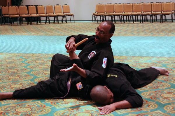 Grandmaster Daniel Verkerke of Canada shows a submission technique from his Seicho-Jutsu system