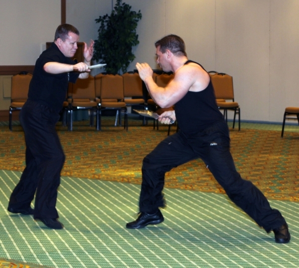 Master Bernd Hohle from Germany conducts a seminar in his system of knife combatives with the assistance of Sensei Thorsten Isringhausen