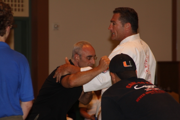 New WHFSC Member, Hanshi Moti Horenstein of Israel/ Florida demonstrates his system of Extreme Hisurdat with volunteer, Master Shuki Drai