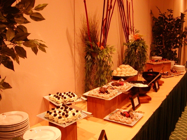 An Island Gourmet buffet greets guests, complete with gourmet desert table