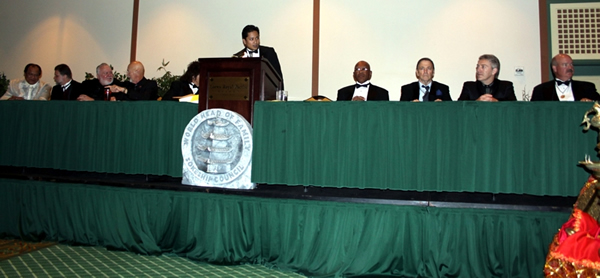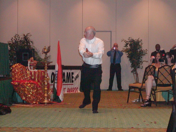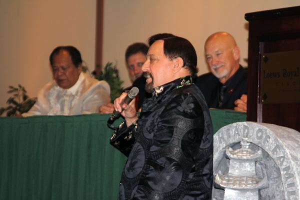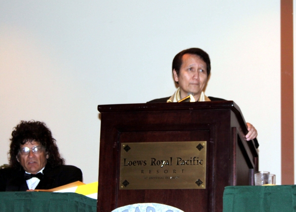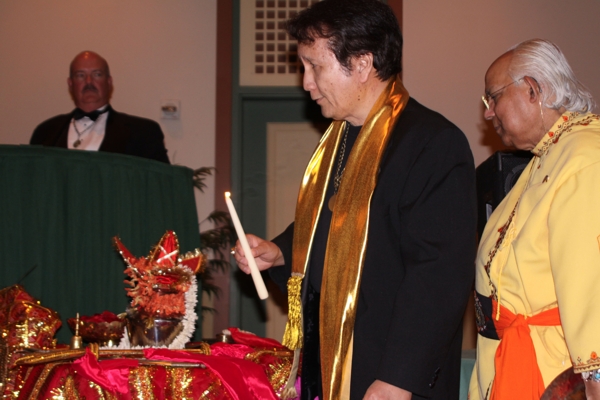 Soke Sanchez performs "lighting of the candles of peace" ceremony with world martial arts spiritual advisor, Grandmaster Sri Dinesh of India/ France as Grandmaster Phil Little looks on from Head Table