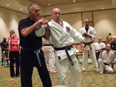 Dr. Dennis Hanover, Founder of Dennis Survival Ju-Jitsu from Israel demonstrates a come-along hold on on one of his students