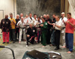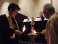 Grandmaster Sanchez performs candles of freedom ceremony under the guidance of martial arts spiritual Guro, Sri Dinesh as Grandmaster Neal Hummerstone looks on
