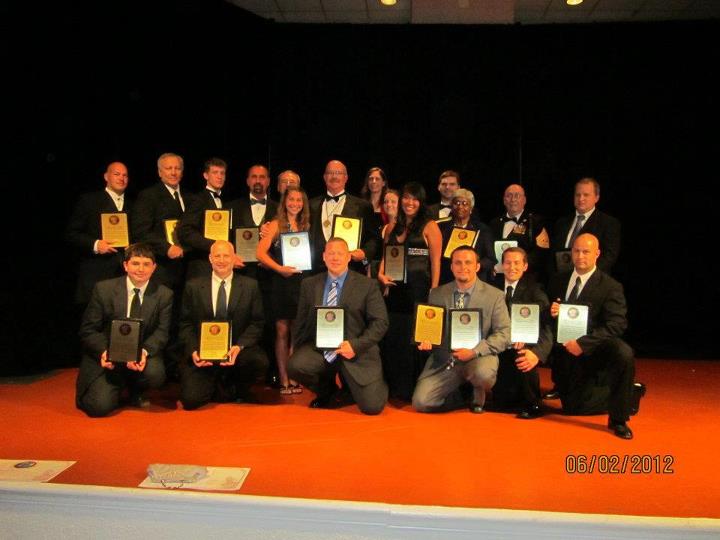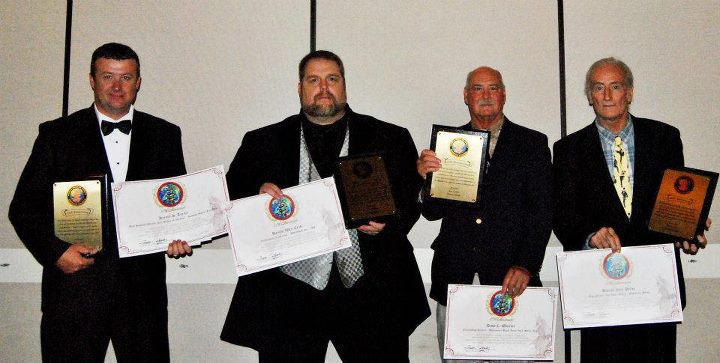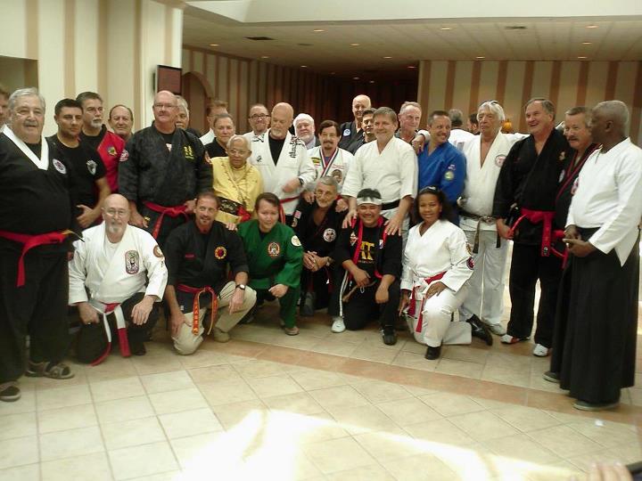 Grandmasters Phil Little, Chris Spruiell & troupe pose for formal picture with their awards — with Master Paul Tucker, GM Chris Spruiell, Phil E Little, GM Phil E. Little, USIKA Isshnryu Karate Group, Master Cathy Best, Master Bob Jenkins and Master Pete Keko.