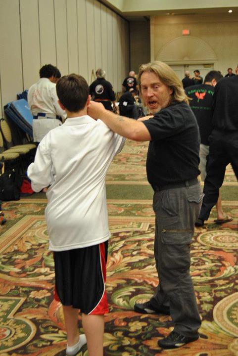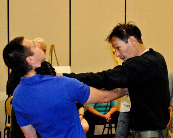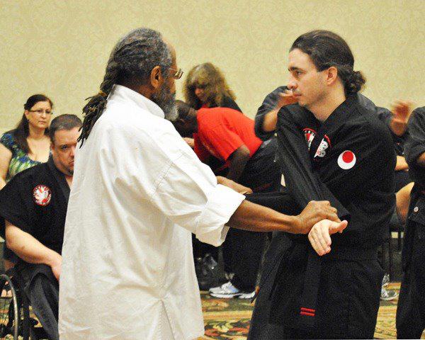 GM Daniel Verkerke of Canada demonstrates a counter strike from his Seicho Jutsu system on a young seminar participant