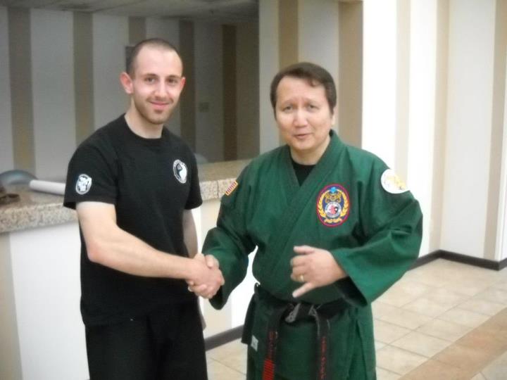 GM Sanchez preparing to demonstrate a San-Jitsu technique on Master Jimmy Rutherford