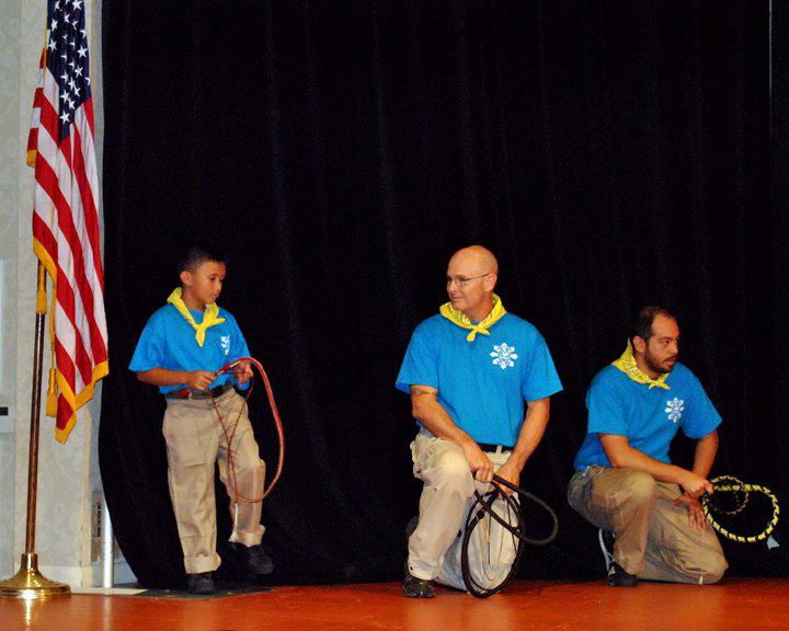 Ama Guro Rafino Pambuan performs a bull whip demonstration on stage