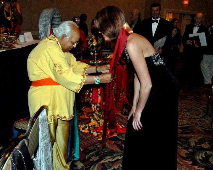 GM Sri Dinesh gives away sacred scarves from India