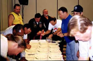 Michael DePasquale Jr. puts on an X-rated hula dance while WHFSC Members discuss how they got talked into going on stage with such a "hussy"!