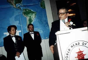 Soke Sanchez from Guam, Founder of the WHFSC addresses membership from podium