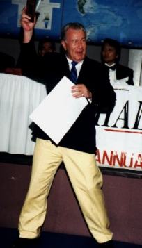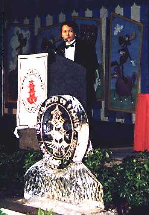 Grandmaster Klaus Romminger of Germany waives his appreciation after being honored with an award from his fellow WHFSC Members.