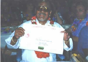 Professor Albert Empron of Hawaii (in lei) host party after awards ceremony for his organization
