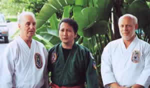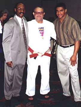 Grandmaster William Duessel (left) & student with Soke Sanchez (middle) at WHFSC function in Orlando, Florida