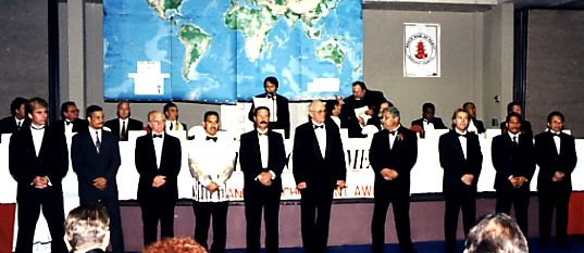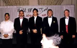 A few of the Council members inducted at the 1998 WHFSC Hall of Fame included (from left to right) Ama Guro Raffy Pambuan, SiGung Glenn Wilson, Master Don "The Dragon" Wilson, Hanshi George Alexander and Hanshi Ray Geraneo.