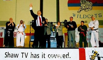 Hanshi Kwan waves to sell out crowd assembled at Canada’s MARTIAL ARTS EXPO 2000! – In the background are Canadian dignitaries and guest speakers filmed live by Shaw TV April 1st - Barrie, Ontario, Canada – In a tightly knit display of martial art talent, some of the world’s top martial artists took to the stage in Barrie to perform a 3 hour benefit show for HANSHI GLENN KWAN, a member of our Council who was financially devasted by an auto accident several years back. The event dubbed MARTIAL ARTS EXPO 2000 was the brain child of Kwan’s student, Master Thomas Puddicombe to raise funds for the health stricken Kwan and his family……Performing on stage before a packed auditorium and Shaw TV which filmed the event were GRANDMASTERS PAN QUING FU (Star of such films as the "Shaolin Temple" and "Iron and Silk"), YOURS TRULY who did an impromptu demo with volunteer Uke, Steve Griggs of "Defense Arts School of Self-Defense" and Canadian GRANDMASTERS DANIEL VERKERKE, DOUG DEVLIN and YOGI SEGARRA……Also, lending their support to the affair were GRANDMASTERS RON BALAS of Ohio and BRUCE JUCHNIK of California who came to wish Kwan well. KUDOS to our Webmaster, SOKE DANIEL VERKERKE of Canada for the SPECTACULAR CHANGES he has made to our official website! If you haven’t looked lately, I would invite you to pull it up at http://www.bushido.org/whfsc/ and take a peek…..If you haven’t connected up your link to the website roster yet or submitted your bio and picture for the biography page, now is the time to do it by e-mailing him at whfsc@bushido.org Also, DON’T FORGET that we are asking you to supply a RETURN LINK to our Council website as well…Show your pride in belonging to the world’s largest and most elite grandmasters council in existence today by also referencing the link on YOUR website! Received a nice call from MICHAEL JAMES, the Publisher of BLACK BELT Magazine, the nation’s oldest martial arts publication. The purpose of the call was just to "chat" and "touch base" on what I thought might be the problems associated with the martial arts industry today. ..No major problems were solved of course by the discussion that day, although we did agree that the current martial arts aerobics trend might "backfire" and cause some problems for martial arts schools in the future….Also, I was surprised to learn that Michael was actually a rock musician at one time who came to California to break into the industry and ended up as the Publisher of BLACK BELT!…. His parents, by the way, also live right here in Jacksonville!…..SMALL WORLD isn’t it!!? While we’re on the subject of it being a "small world"…..I was very pleased to have join us, SENSEI RUSS COELHO of California who will represent the art of DANZAN RYU JU-JITSU on our Council…..Sensei Coelho was a Senior Instructor of the late PROFESSOR SIG KUFFERATH, the elected Heir to the worldwide DANZAN RYU (Hawaiian) JU-JITSU Empire, who was also a former teacher of mine (Sig Kufferath, that is). Russ taught at Professor Kufferath’s NIKKO JU-JITSU School in Mt. View, California….Both of us could remember each other from those days!…..It was like talking to a long lost relative on the phone…..As many of you know, PROFESSOR KUFFERATH also honored me by joining this Council before his untimely death. By wish of the Kufferath family there will be NO INHERITORS of the DANZAN RYU System, but Russ is Leslee Kufferath’s (Sig’s daughter) personal choice to carry on the tradition of Sig’s teachings…..As a firm believer of "family", this choice will be honored by this Council….Again, there are no Inhertors to the DANZAN RYU System and the system is now fragmented and taught by many varied and talented instructors, including some outstanding Professors of the art, but Russ will represent DANZAN RYU on this Council per the wishes of Sig’s daughter and family, as well as by my choice as well….He is an excellent gentleman and practitioner fitting the "mold" of most of those taught by the late, great PROFESSOR SIGFRIED KUFFERATH….WELCOME TO OUR WHFSC FAMILY, SENSEI COELHO! From Florida…..GRANDMASTER CARL STONE who recently won first places in Kata and Weapons competition after coming out of retirement, reports that his dojo with the help of wrestling star, Randy "Macho Man" Savage helped raise $5.000.00 for "PROJECT ACTION", a program set-up to help disadvantaged youth)…..Carl is also the instructor of wrestling superstar, Terry Balboa, better known as "HULK HOGAN", who has a Black Belt in Ju-jitsu under Stone….. Stone’s demo team, that also performed at last years WHFSC International Hall of Fame/ Seminar Symposium "WOWED" them recently at BUSH GARDENS in Tampa……NICE GOING, CARL! For those of you who attended last year’s WHFSC International Hall of Fame in Orlando, you may have remembered a professional photographer taking pictures of the grandmasters present and wondered what the photos were going to be used for…..I know I did , as a student and I posed for some fighting shots for her and she "vanished" right afterwards……Well, it turns out that her name is Beth Gwinn, a professional photo journalist who has authored several photo books in the past. Master Joe Lansdale who is working in conjuction with her will be taking interview questions this time around at our upcoming 6th ANNUAL INTERNATIONAL MARTIAL ARTS HALL OF FAME Gathering on September 1st – 2nd, 2000,. The purpose of the photos and interviews is for a new photo book on martial arts masters that Beth is working on…..All the more reason to attend our upcoming event! Member, GRANDMASTER JURG ZIEGLER of Switzerland, who is the Inheritor of the late GRANDMASTER B.C. KANG’S ( a posthumous member of this Council from Singapore) SOUTHERN SHAOLIN LOHAN System reports that he and his students were busy choreographing and playing Ninjas for a new 8 part Comedy Show on Swiss TV featuring Swiss comedy stars, Beat Schlatter and Lea Had