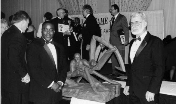 Student loyalty awardees: David Brey, Jimmy Rutherford, and Robert Schmitt admire mantis sculpture by Ama Guro Raffy Pambuan IN THE MAGAZINES THIS MONTH......The December issue of BLACK BELT features an interview with MASTER RICKSON GRACIE, article by MASTER ROBERT FERGUSON and full page of our WHFSC Membership; along with mentions of MASTER JACKIE CHAN, MASTER WILLIE "THE BAM" JOHNSON and PROFESSOR WALLY JAY......INSIDE KUNG-FU features GRANDMASTER RORION GRACIE'S Column on grappling, along with mentions of MASTERS NICK STARKS, SID CAMPBELL and RICK HACKWORTH......KARATE/ KUNG-FU ILLUSTRATED features column by-lines by members, MASTERS DON "THE DRAGON" WILSON and ROBERT FERGUSON......THE KARATE VOICE features GRANDMASTER GEORGE ALEXANDER on the cover with an article on SIJO GLENN WILSON and columns by MAESTRO PETER URBAN and JUNG SHEE JAMES LACY; along with mentions of GRANDMASTERS JOHN PELLEGRINI, AL DACASCOS, DON "THE DRAGON" WILSON and HANSHI GLENN PREMRU......MARTIAL ARTS TRAINING features an article by GRANDMASTER PHILIP HOLDER......MARTIAL ARTS ILLUSTRATED (from California not England) features an article on GRANDMASTER BALTIZAR SAYOC'S "SAYOC SYSTEM"......and lastly, TAEKWONDO TIMES features articles by GRANDMASTER KIM SOO and JUNG SHEE JAMES LACY with mentions of GRANDMASTER JI HAN JAE, GRANDMASTER JOHN PELLEGRINI and MASTER RICK HACKWORTH...... This concludes our newsletter for this bi-monthly period of September and October...Until next time, please stay "aggressive" and "fair" in all that you do! Sincerely yours in martial arts brotherhood,