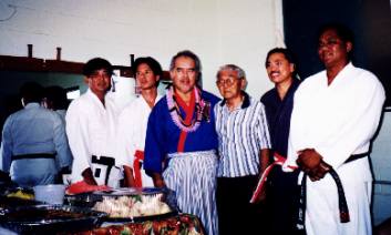 . The late Professor Albert Empron (middle in Lei) of Hawaii at gathering of Tenjinkan Karate Our condolences go out to the family of PROFESSOR ALBERT EMPRON, Founder of TENJINKAN KARATE who died in Ewa Beach, Hawaii on June 2nd. We only received notification of his passing after notices were sent out to the membership asking for their photos & bios for an upcoming book on the Council being produced by GRANDMASTER DON WARRENER of RISING SUN PRODUCTIONS. Mrs. Empron wrote back to say that her Husband had sadly passed away. He will be greatly missed by all .who knew him. Grandmaster Carl Stone (middle) flanked by Grandmasters Dan Anderson (to his left), GRANDMASTER CARL STONE of Florida is now the FLORIDA STATE REPRESENTATIVE for WUKO & will be traveling to Beijing, China next year as one of its Officials to attend the Olympics where Karate will be one of the featured sports there. He was also made a CO-COMMISSIONER FOR Actor/ Grandmaster Chuck Norris' WORLD COMBAT LEAGUE & a member of Grandmaster Joe Lewis'