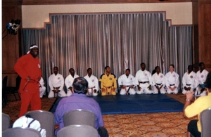 15TH ANNUAL GATHERING OF THE WHFSC IN SAN ANTONIO A HUGH SUCCESS! - Our recent international event held at the world famous Riverwalk in San Antonio, Texas on May 23rd -24th was nothing short of spectacular with our first ever world tournament, international seminars; news coverage, including the attendance of the Mayor of San Antonio's representative who read a proclamation on our behalf ; Marine Color Guard; & various other surprises . Special thanks to my student in Texas, Sensei Phillip Spears & his lovely Wife, Glenda for putting this event together for us; to my Son, Sensei Matthew Sanchez for his fine job of emceeing & to everyone else behind the scenes who contributed to its success. Next years' event because of popular demand will be held in San Antonio again at the Hyatt Hotel on the Riverwalk. If you missed this years' event, don't miss next years' & mark your calendars for May 22nd -23rd, 2009! Grandmasters pose for Photo after annual meeting