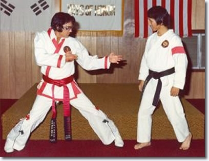 HISTORICAL PHOTO Grandmaster Kang Rhee (R) w/ student, the late King of Rock n' Roll, Elvis Presley